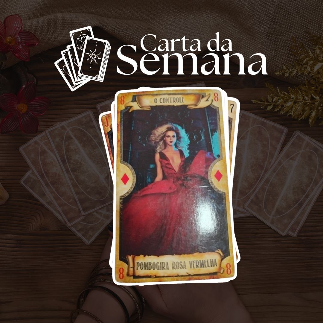 A carta da semana, “O Controle”, traz a energia poderosa e vibrante da Pombogira Rosa Vermelha para nos guiar. Esta semana é um convite para olharmos de perto como lidamos com o controle em nossas vidas. O número 8, associado a esta carta, fala de poder, abundância e, principalmente, do equilíbrio entre o que podemos e o que não podemos influenciar.